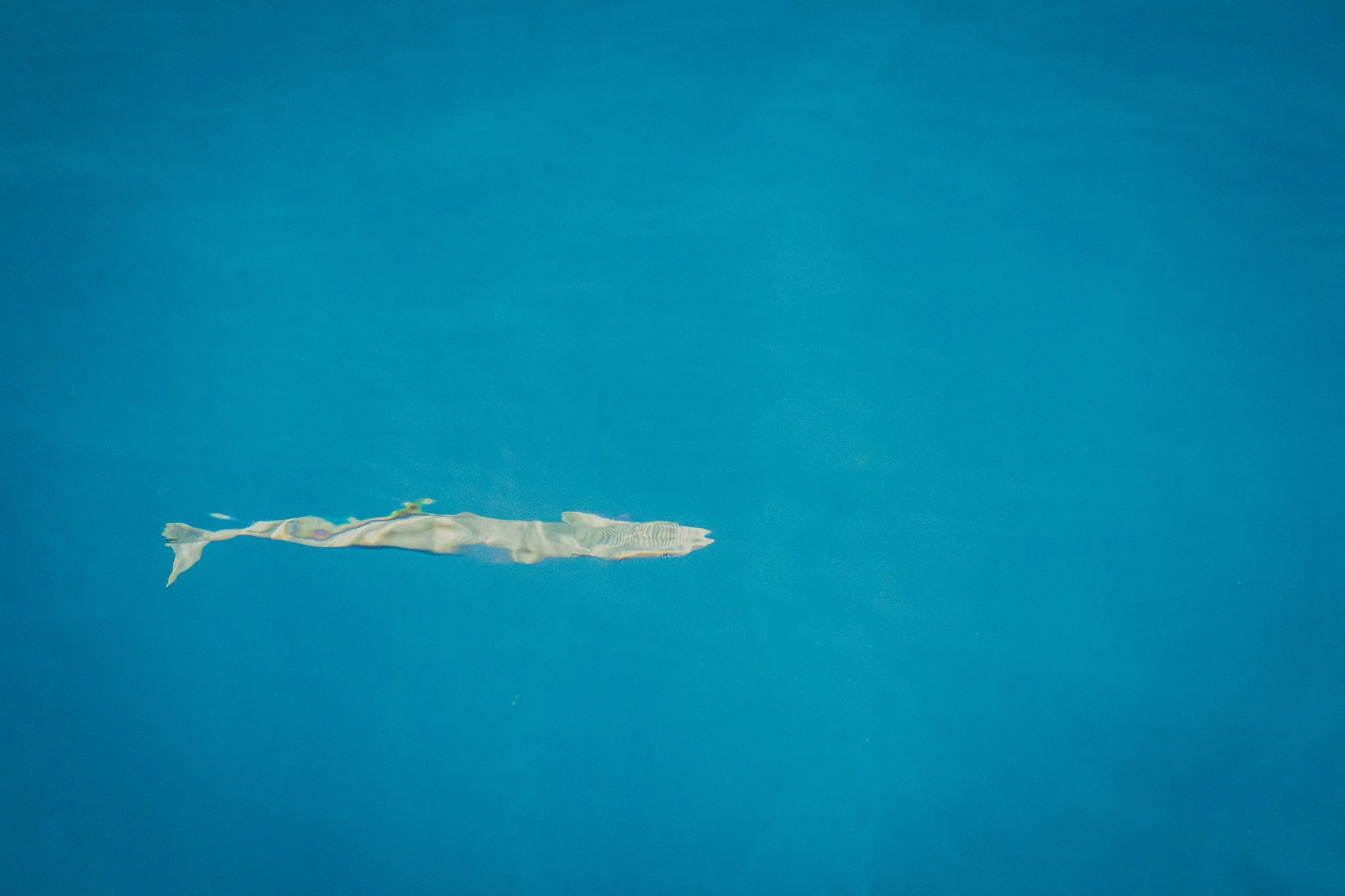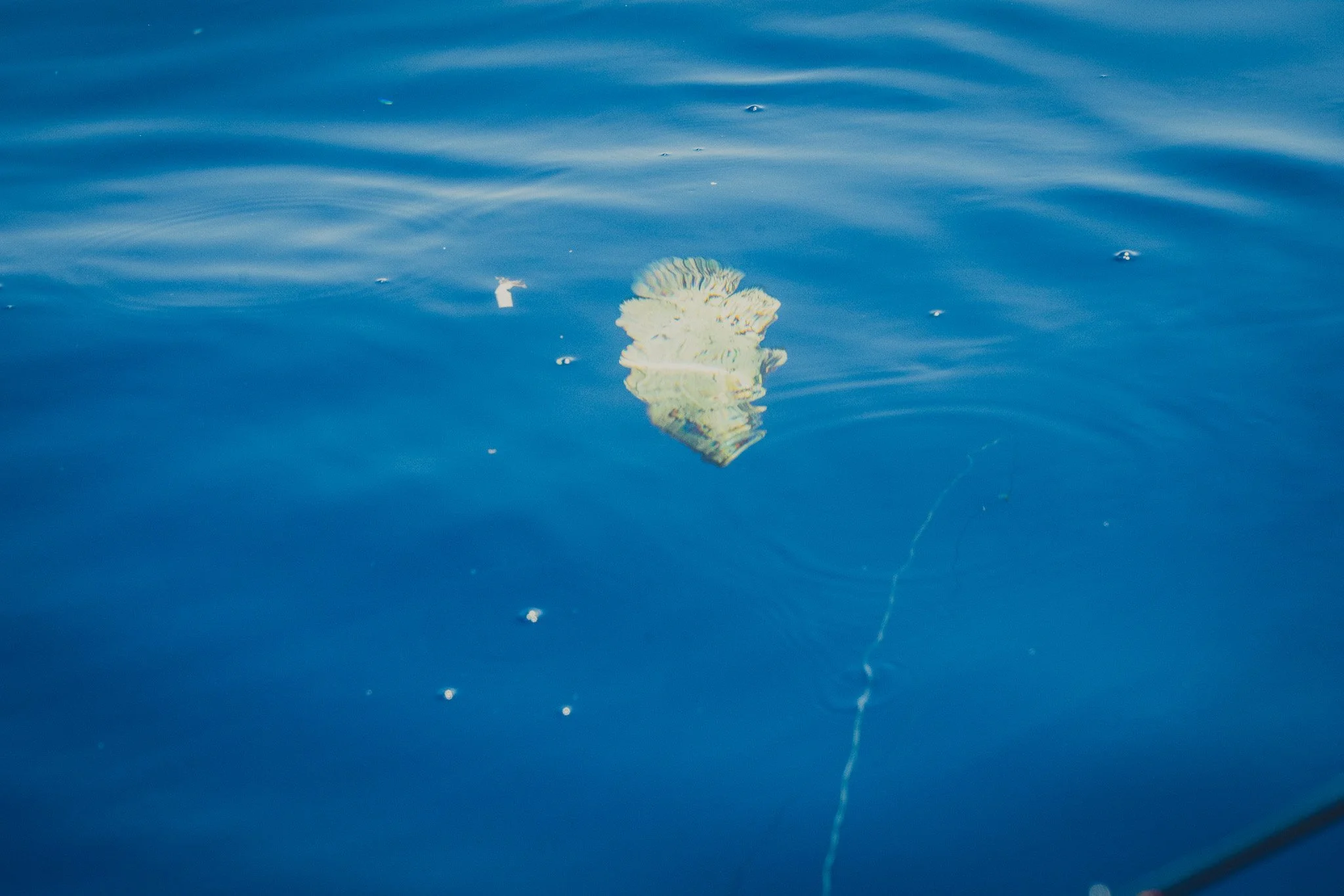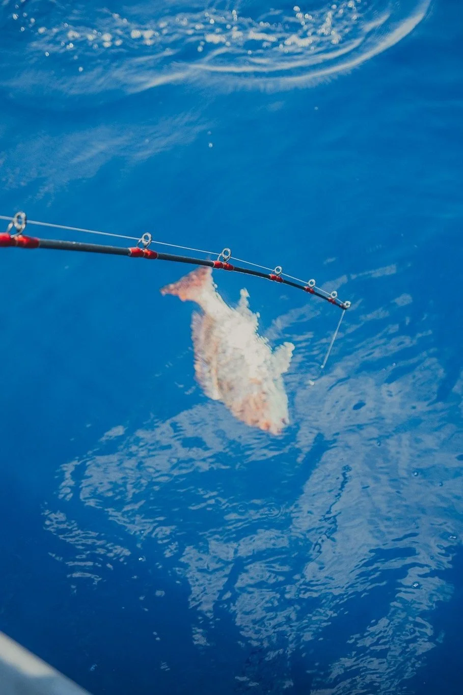 Juvenile Atlantic Tripletail and other sport fish are often found sheltering under floating mats of Sargassum seaweed and other natural objects like drift wood. Around 35 miles offshore, this one decided to make its home near a floating trash bag we believe was thrown overboard by a nearby shrimp boat crew. The baby fish ate a few of our bits of chum, but refused to venture more than 10 or so feet from the safety of the trash bag. This experienced reminded me of a SciShow video I’d recently watched, which discusses the nuances and complexities of ocean surface clean-up. Namely, the issues with removing trash that sea-life is using as habitat. Small organisms in open water are at great risk of predation by larger animals.