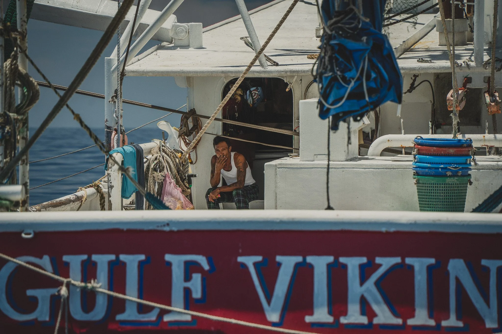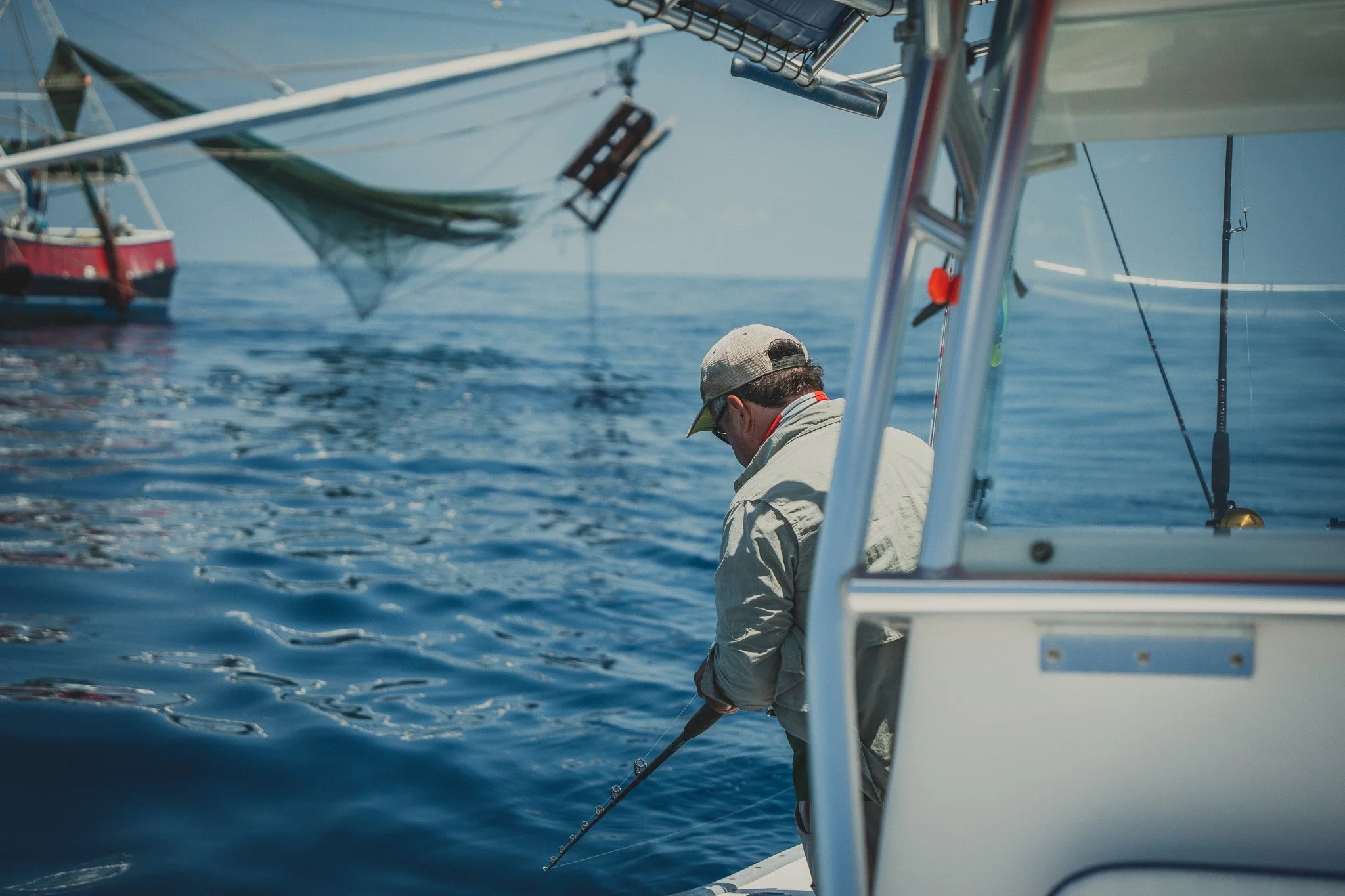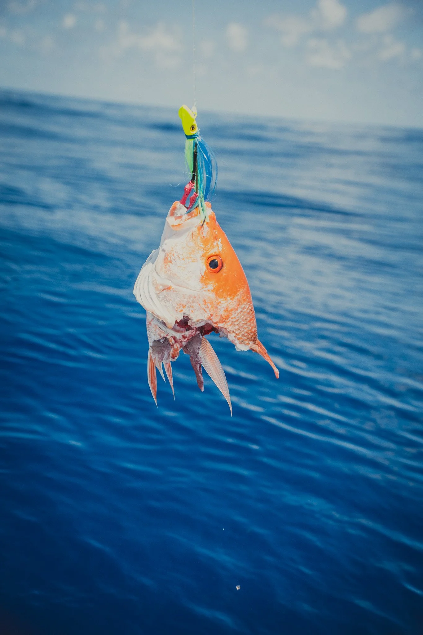 Juvenile Atlantic Tripletail and other sport fish are often found sheltering under floating mats of Sargassum seaweed and other natural objects like drift wood. Around 35 miles offshore, this one decided to make its home near a floating trash bag we believe was thrown overboard by a nearby shrimp boat crew. The baby fish ate a few of our bits of chum, but refused to venture more than 10 or so feet from the safety of the trash bag. This experienced reminded me of a SciShow video I’d recently watched, which discusses the nuances and complexities of ocean surface clean-up. Namely, the issues with removing trash that sea-life is using as habitat. Small organisms in open water are at great risk of predation by larger animals.